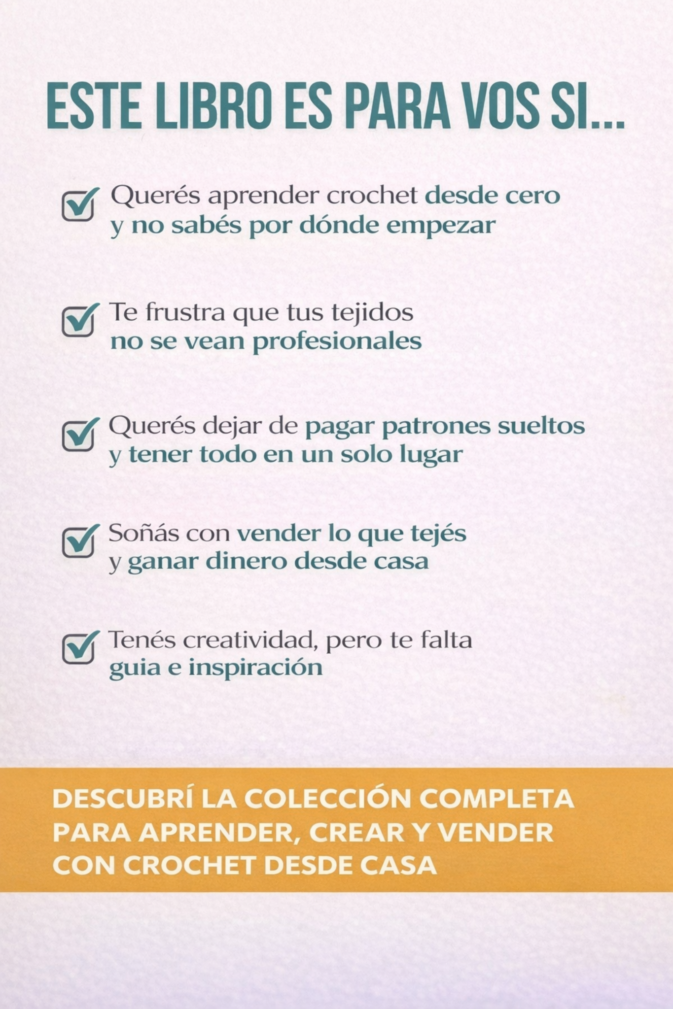 🔥 Porque este libro no es “más de lo mismo”: está armado con patrones exclusivos, bonus irresistibles y un enfoque pensado para que disfrutes y hasta emprendas. Es contenido premium, todo en un solo lugar y sin perder horas buscando.